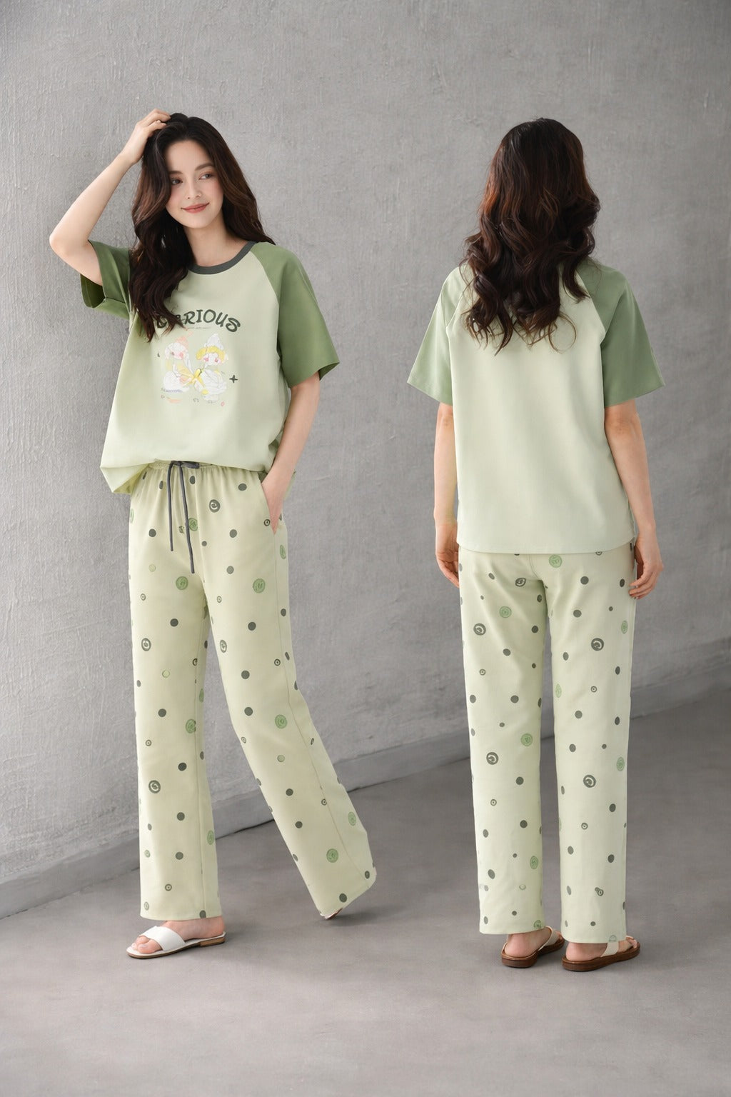 (NEW ) Olive green Carious Printed Night suit For her