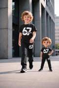 Black half sleeves 67 printed kids suit