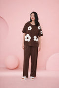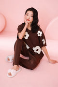 (NEW ) Brown All over BIG White flower night suit For her