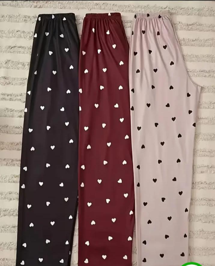Pack Of 3 Multi Colored Hearts Printed Plazzo Pajamas For Ladies