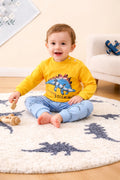 Yellow with Blue Dinosour Printed T shirt with multi dino trouser kids suit